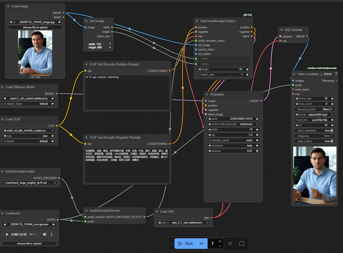 WAN 2.2 Speech to Video Comfyui workflow