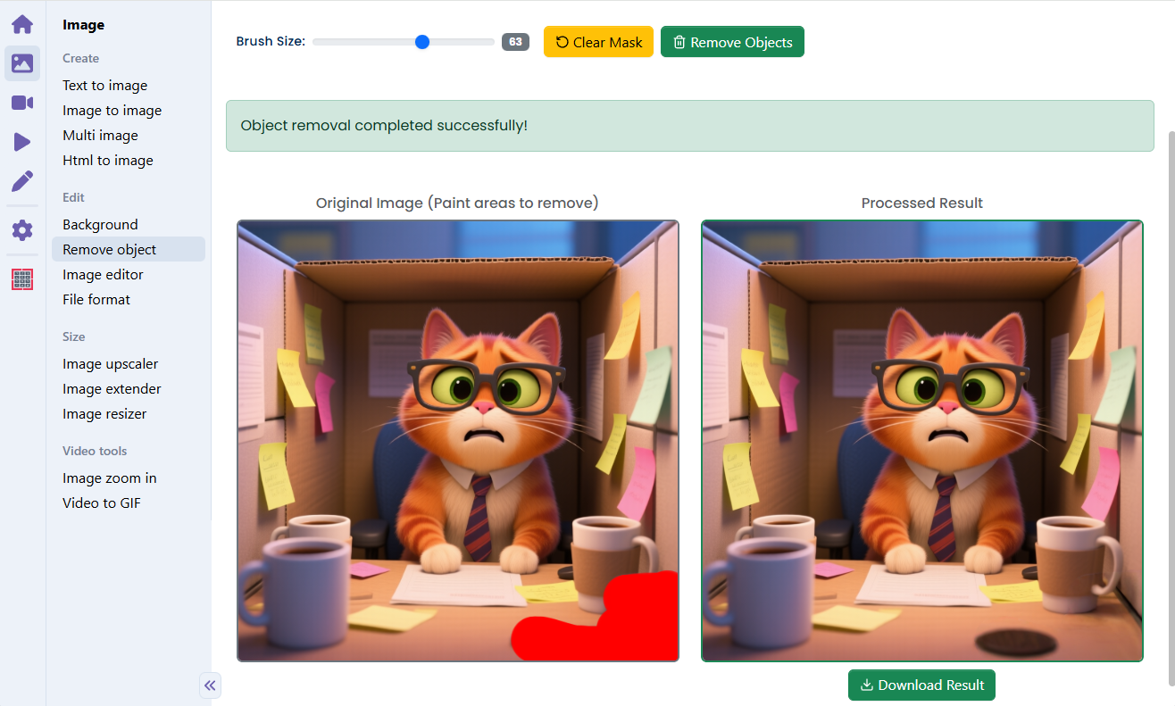 Step 11: Open Videcool in your browser, select the Image Object Remove tool, and use the cleaned images in your video or design projects.
