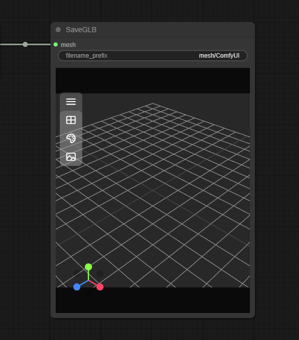 | (none) | — | SaveGLB is an output node; it writes a GLB file to disk and does not emit graph data |