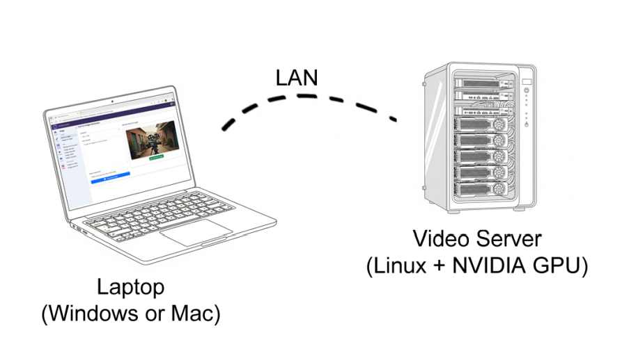 The advantage of having a dedicated video server is that it can be used by multiple users at the same time, and it takes the video generation workload off from your laptop, freeing up resources for other tasks. In this setup, the users can use the video server through a web browser. An AI video server can handle several video projects simultaneously, reducing wait times for rendering. Additionally, centralized storage on the server makes it easier to manage and back up video files securely.